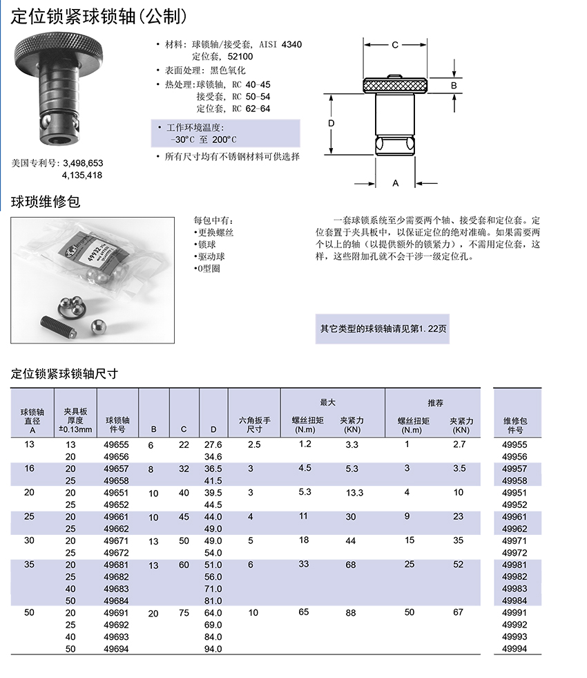 定位鎖緊球鎖軸(公制)